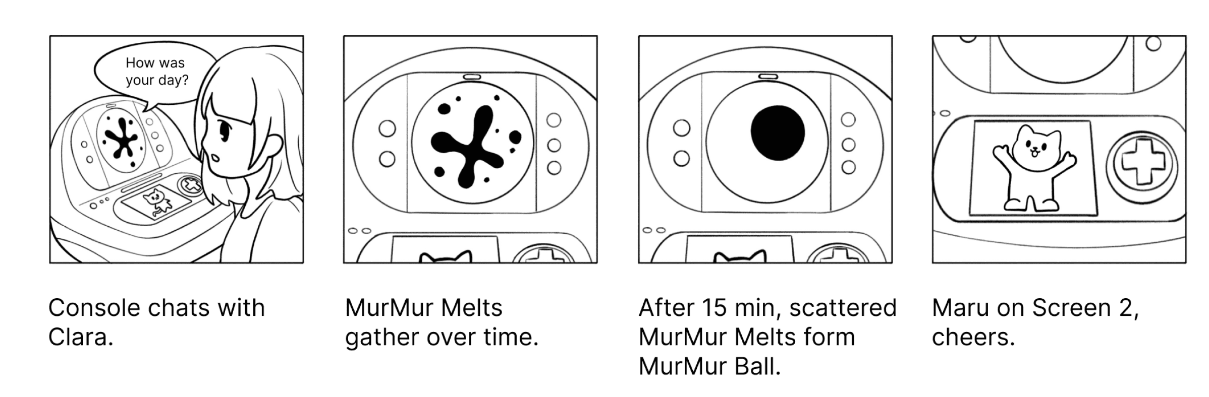 Design a ferrofluid game console that interacts with children